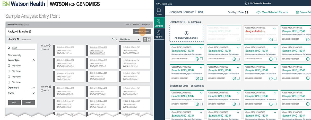 Watson for Genomics was a project I inherited when I first arrived at Watson Health. It was also the first team I had there, and this was the quintessential case study for working with a team who initially had no use for UX other than making something pretty.